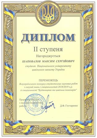- Мацакова А.І. - призове місце на ІI етапі Всеукраїнського конкурсу студентських наукових робіт у 2023/2024 навчальному році, “Цивільна безпека в умовах воєнного стану”, секція “Стійкість будівель та споруд”. Диплом ІІІ ступеня.