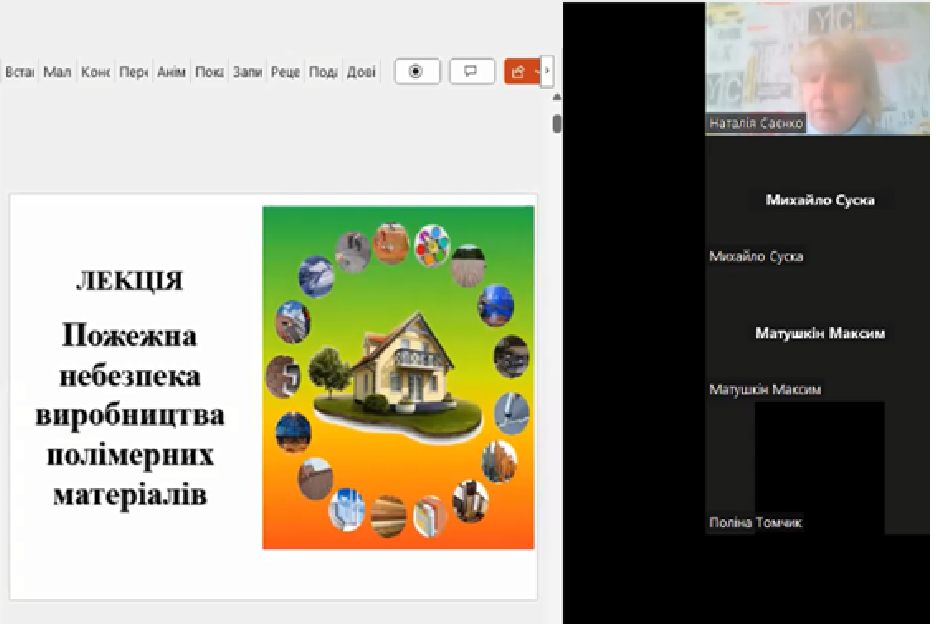 Також старший викладач кафедри ПТБОТ факультету пожежної безпеки Наталія Саєнко, провела відкриту лекцію з дисципліни «Пожежна безпека об'єктів підвищеної небезпеки» на тему «Пожежна безпека виробництва полімерних матеріалів» зі здобувачами вищої освіти груп ПБОПН-20-2, ПБОПН-20-1, АТПБс-20-446, АТПБс-20-447.