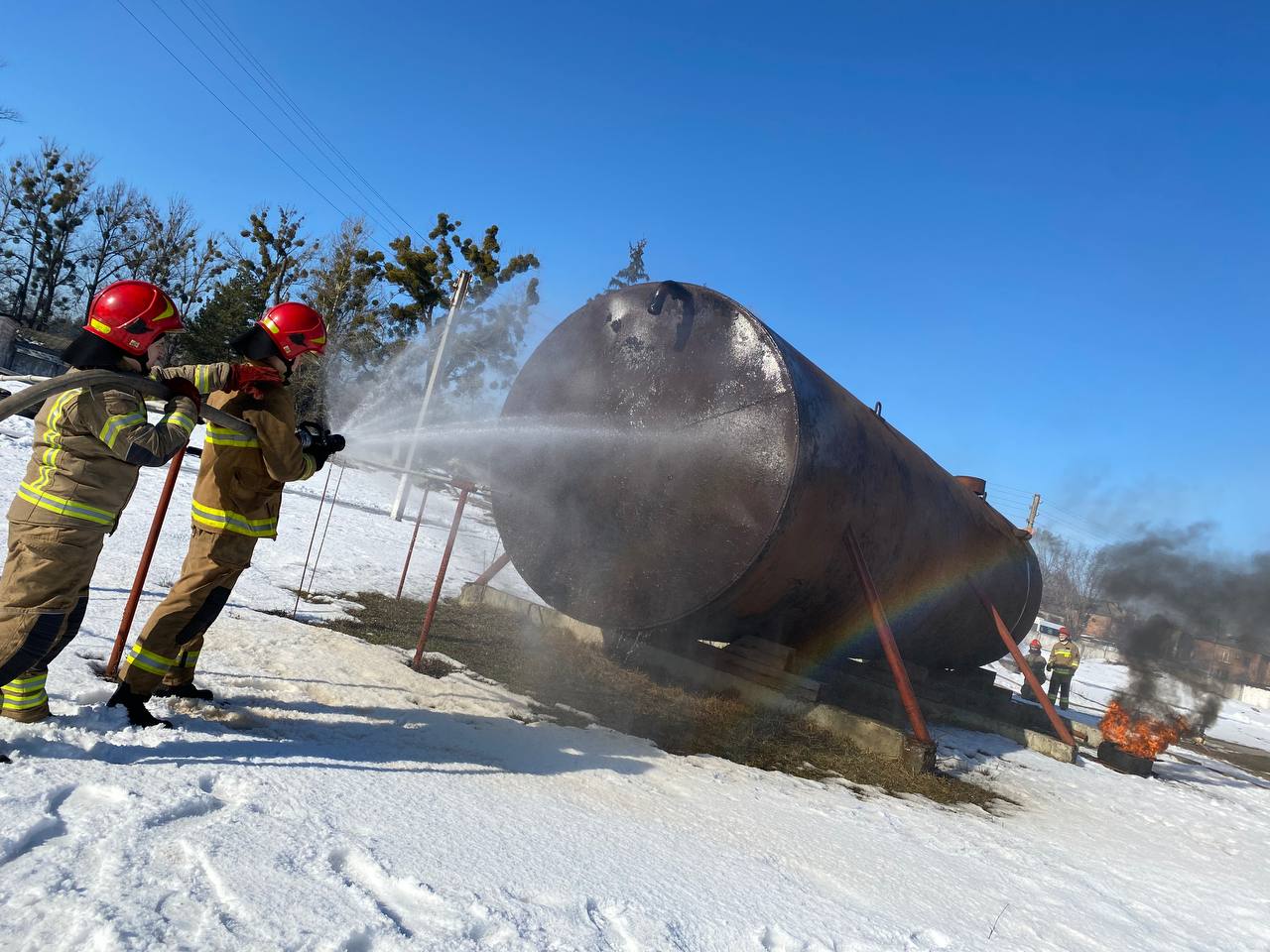Курсанти 4 курсу відпрацьовують дії під час гасіння пожеж в резервуарі з паливно-мастильними матеріалами