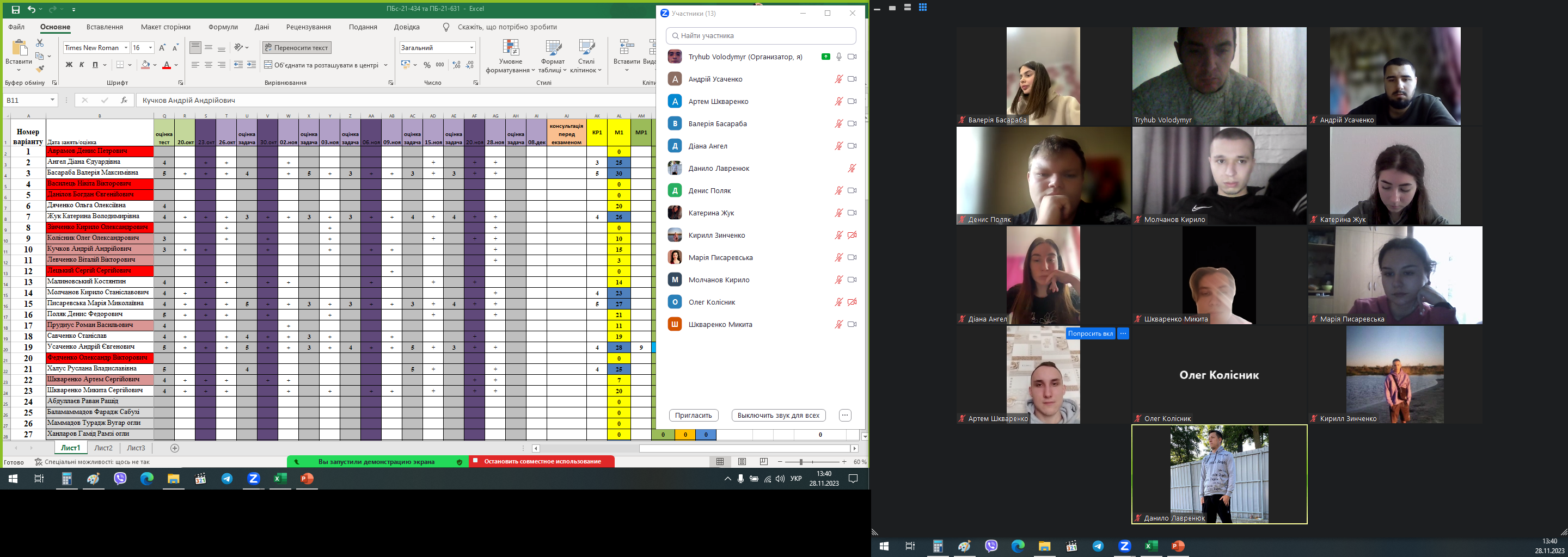 Під час проведення кураторських годин обов'язково обговорюється поточний стан навчання та успішності у групах