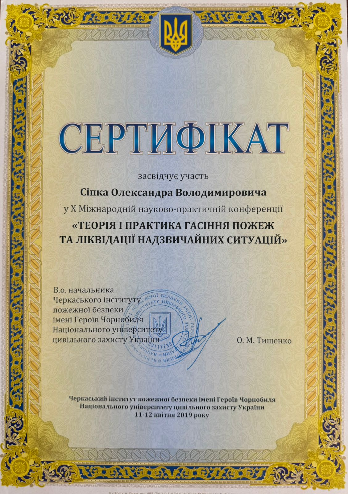 - участь у Х Міжнародній науково-практичній конференції «Теорія практика гасіння пожеж та ліквідації надзвичайних ситуацій» на базі ЧІПБ ім. Героїв Чорнобиля НУЦЗ України, 2019 р.;