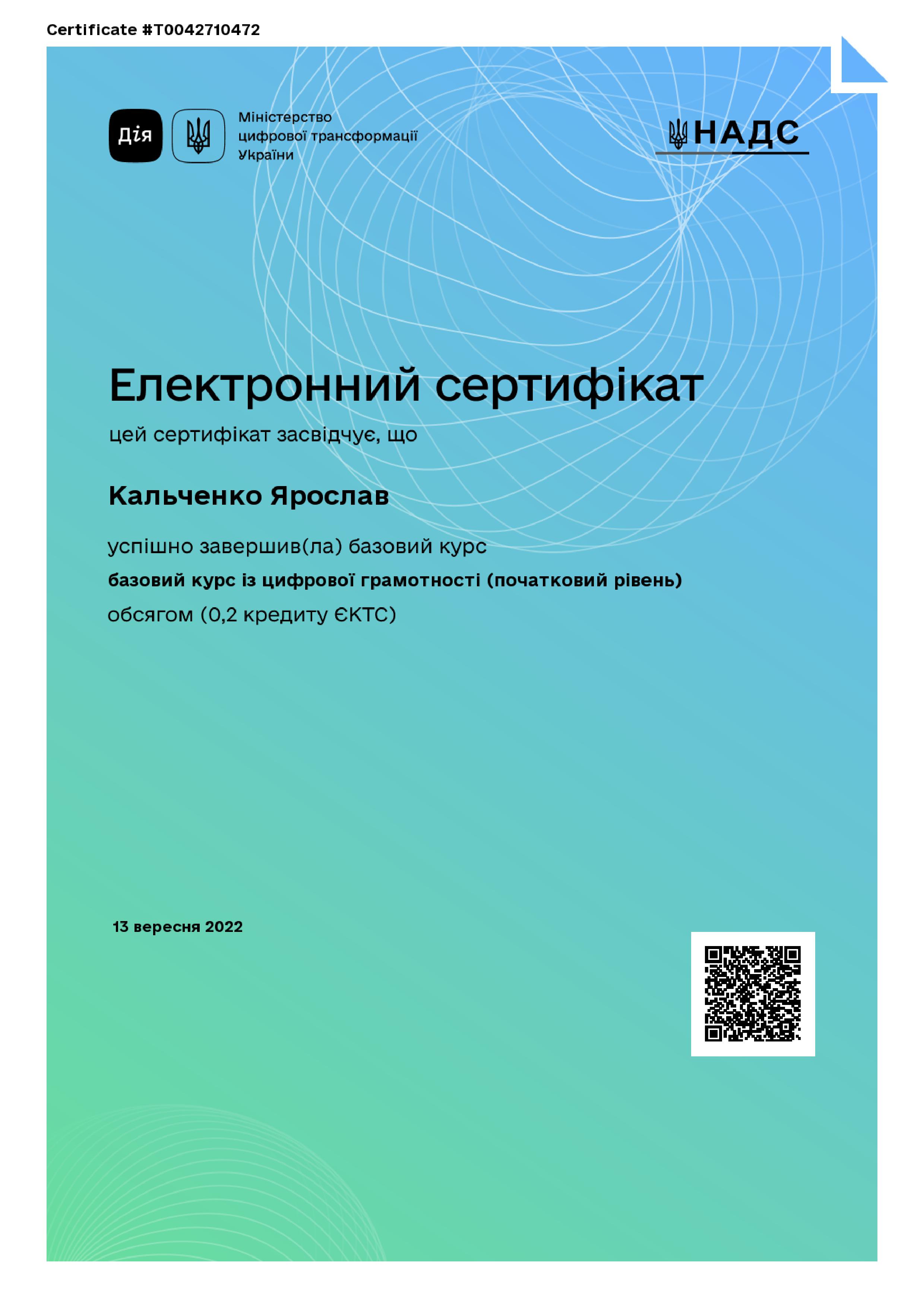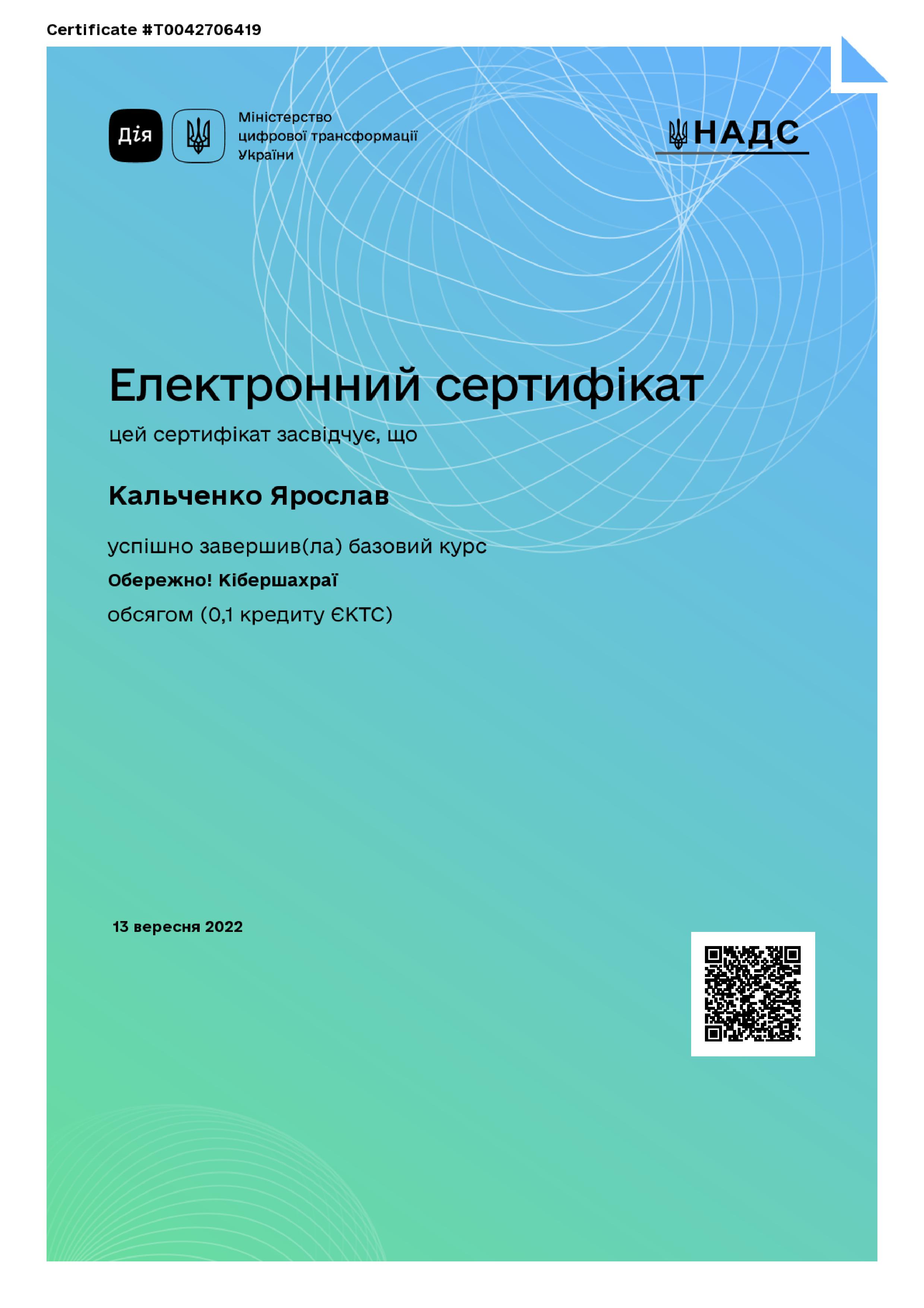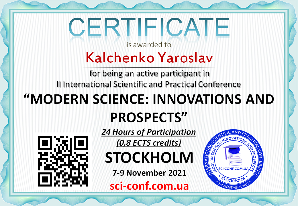 - Kalchenko Yaroslav, Istratova Diana. Analysis of thermal fire detectors system operation // The 12th International scientific and practical conference “International scientific innovations in human life” (June 8-10, 2022) Cognum Publishing House, Manchester, United Kingdom. 2022. 214 p.