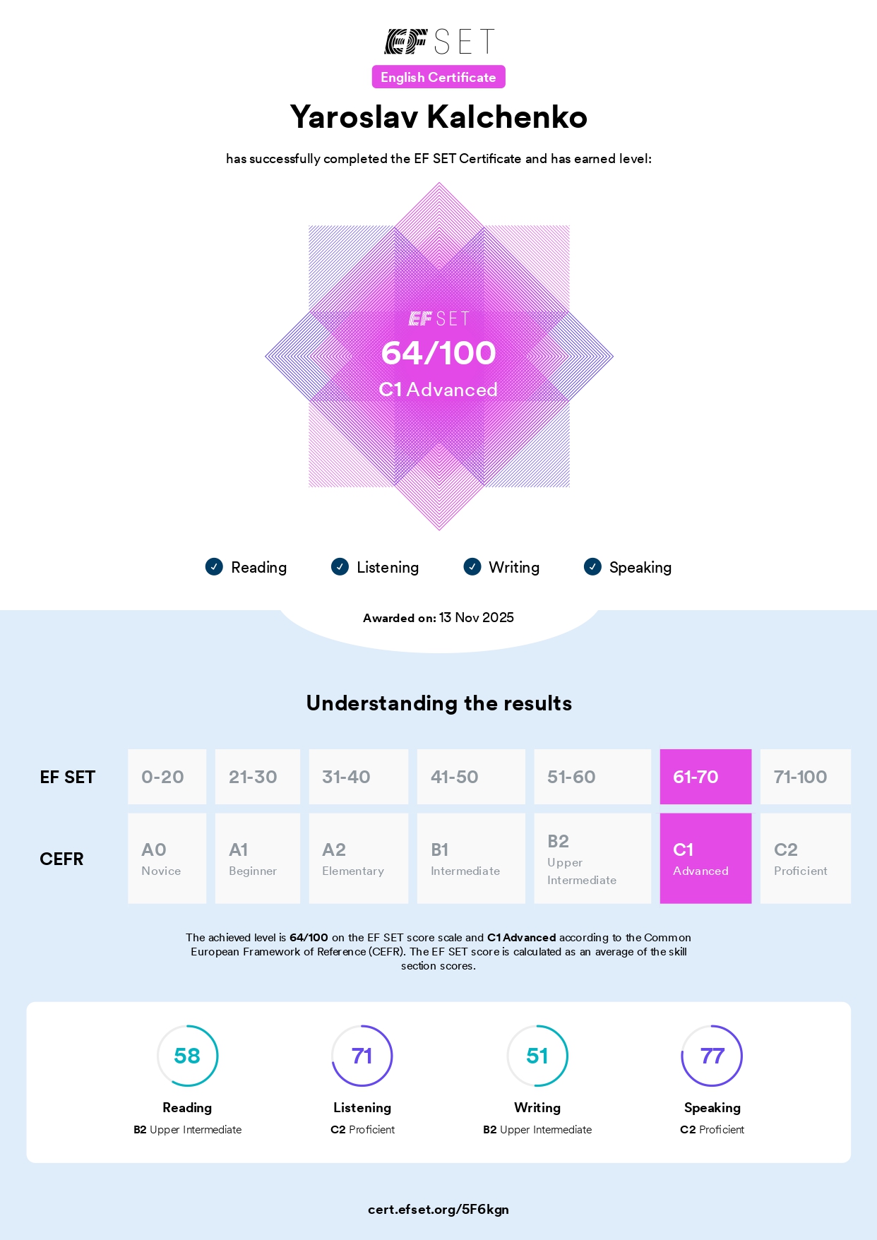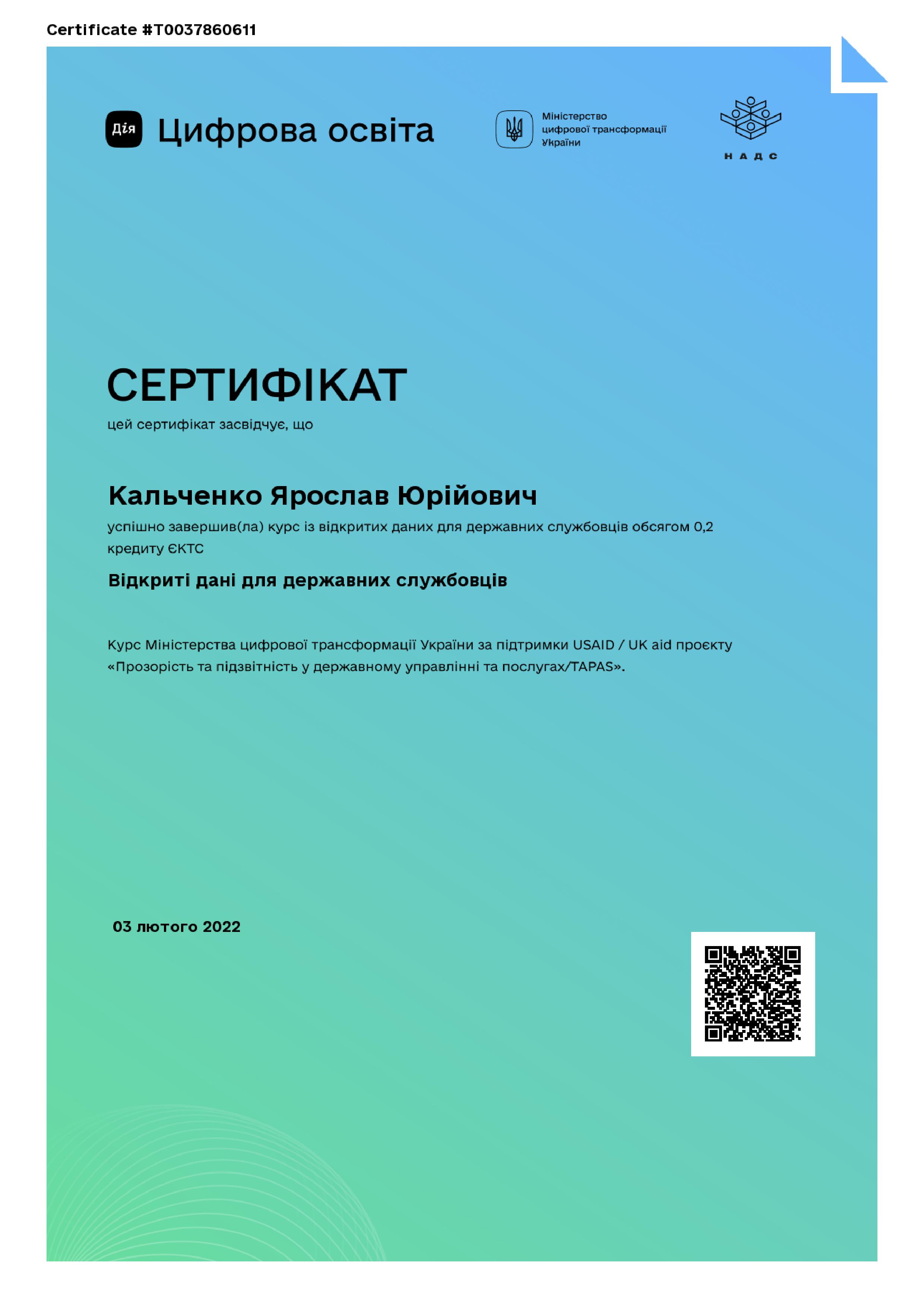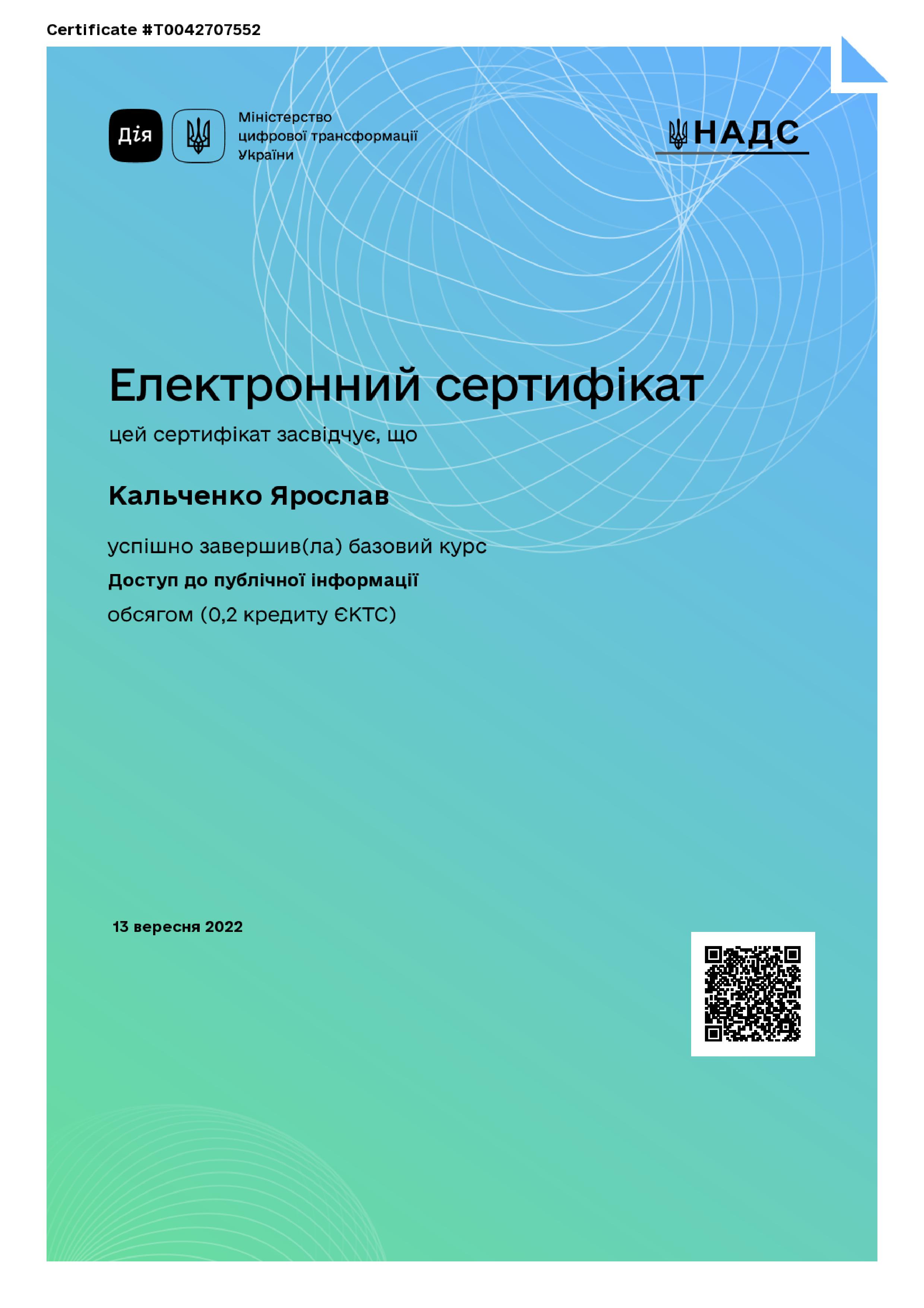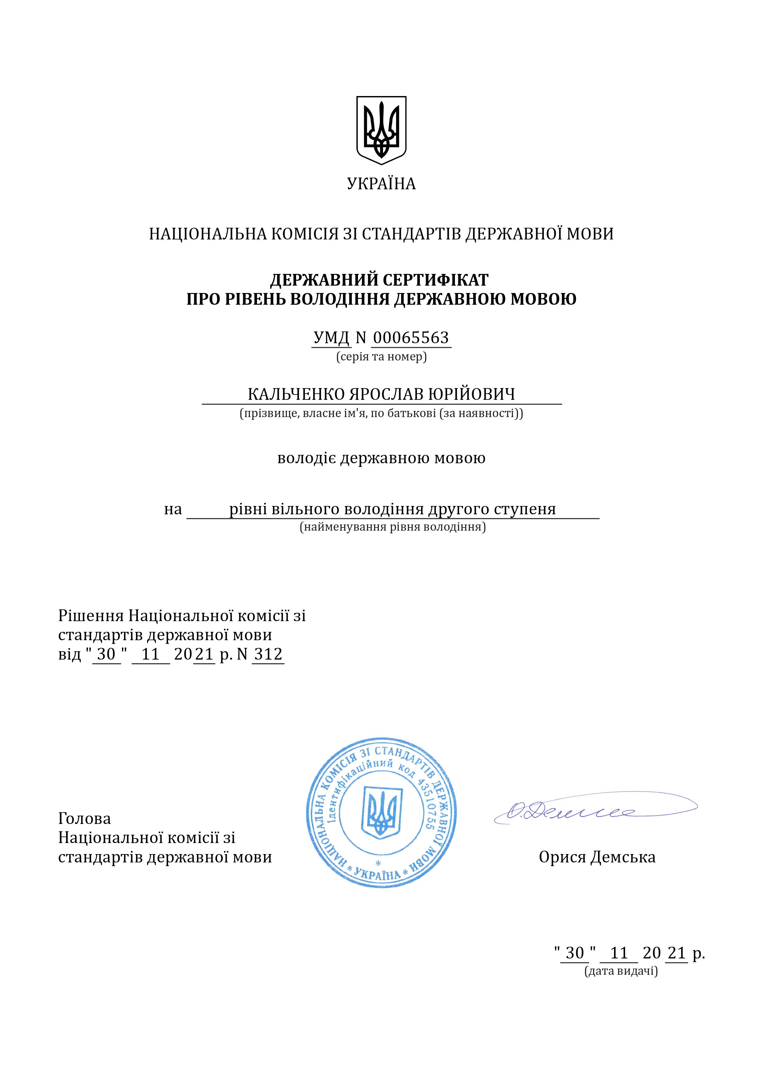 Прийняв участь у комплексному проєкті компетентнісна Допомога для України - Competence Aid For Ukraine (CAFU), метою якого є надати українській студентській та академічній молоді компетенції, які доповнюють їхнє навчання, а також створюють можливість цілісного впливу на післявоєнне відновлення України відповідно до стандартів Європейського Союзу і Цілей Сталого Розвитку ООН. В рамках проєкту пройшов навчання за напрямком «Effective practices of universal design from Swedish communities».