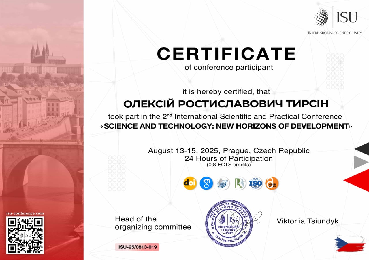 Олексій Ростиславович Тирсін. Міжнародна науково-практична конференція. Science and Technology: New Horizons of Development