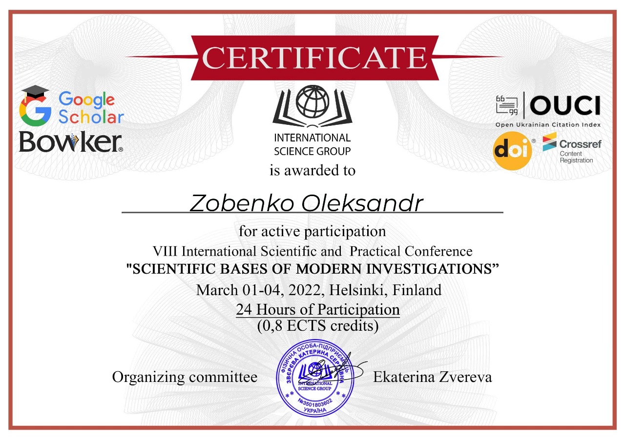 - Zobenko Oleksand. Determination of features of temperature fuses application in detachable connections. Теchnical sciences scientific bases of modern investigations, с.244.